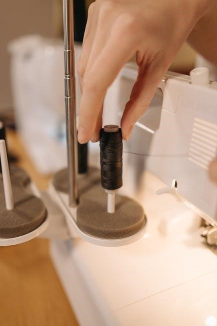 Next, continue threading through the take-up lever and down to the needle clamp. Finally, thread the needle from front to back. A needle threader may be helpful. Double-check that the thread is correctly positioned in all guides. Incorrect threading is a common cause of issues. Refer to the machine’s diagram for visual guidance, much like using VQFolio for learning materials.